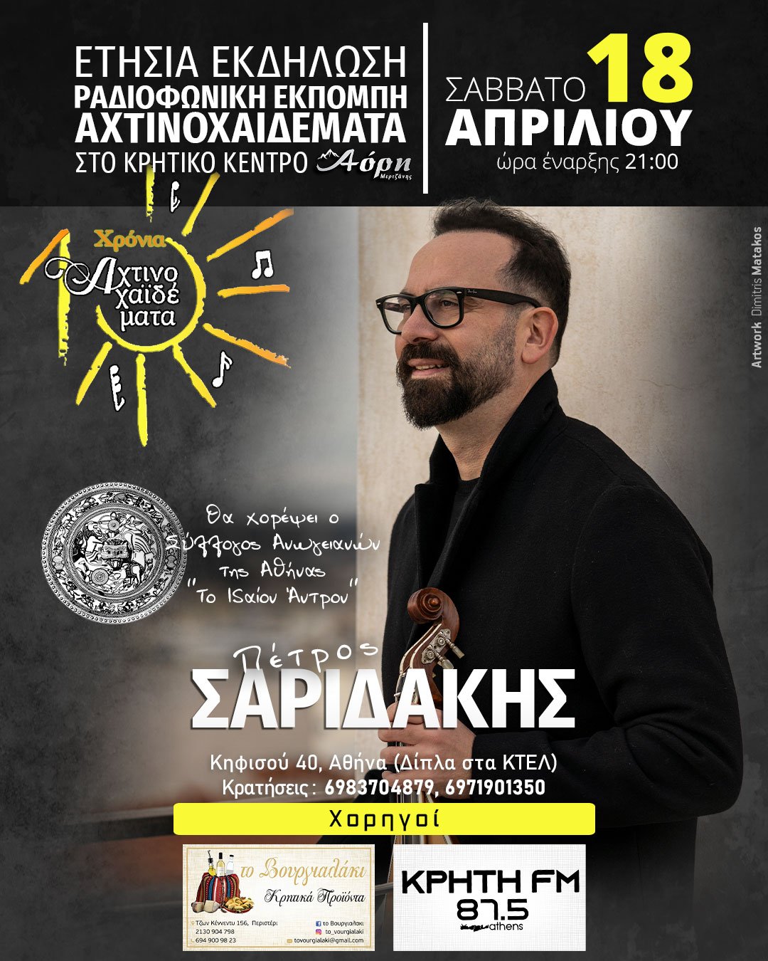 🎻 Μια ξεχωριστή βραδιά γεμάτη κρητική μουσική, παράδοση και αυθεντική διασκέδαση, με τον εξαιρετικό Πέτρο Σαριδάκη να μας ταξιδεύει με τη λύρα του!