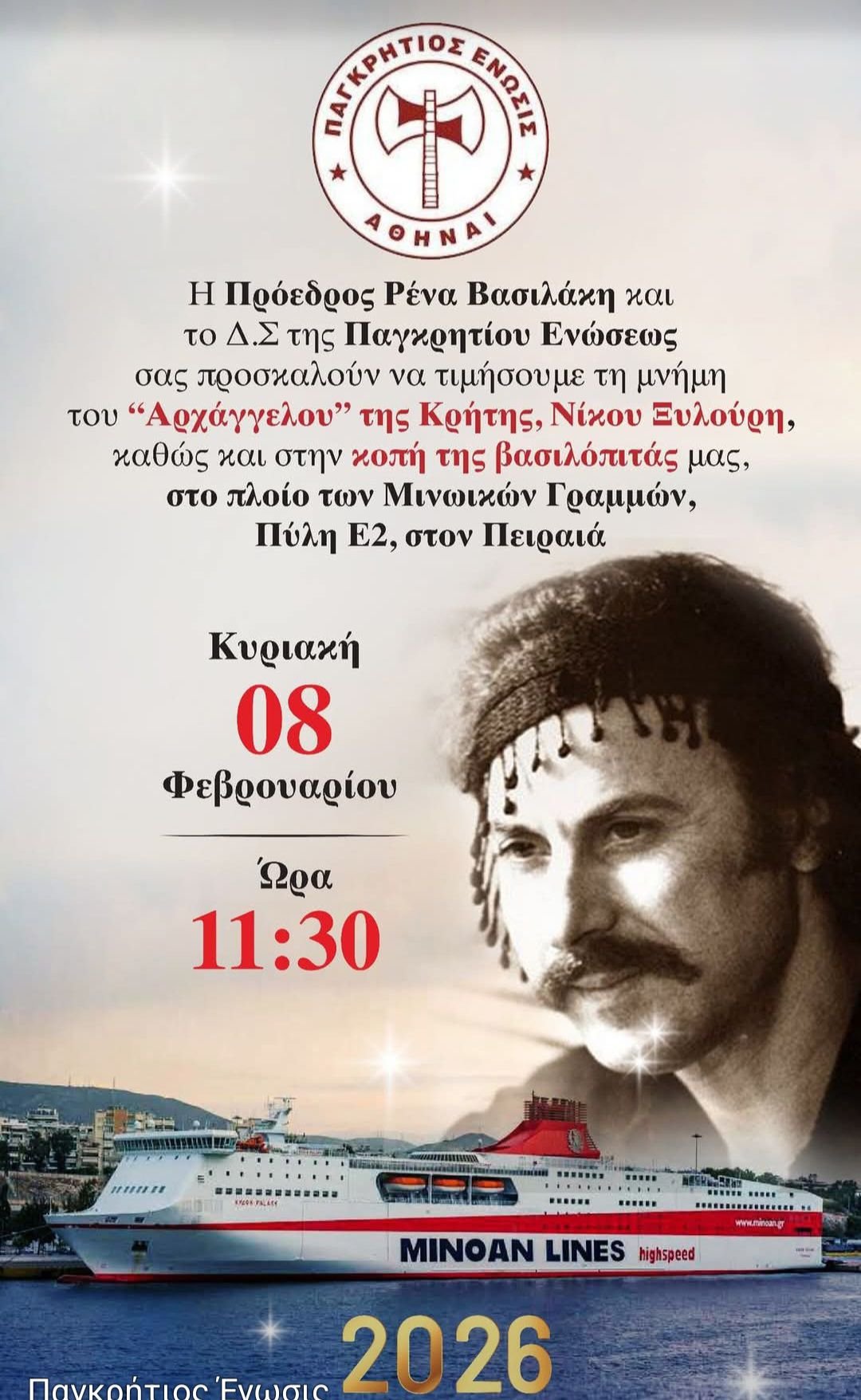 Αρχική > Αττική > Παγκρήτιος Ενωση-Τιμή στον Αρχάγγελο Νίκο Ξυλούρη και κοπή της Αγιοβασιλόπιτας